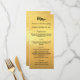 Cartão de menu de jantar de Natal. Personalize e adicione um nome/evento, data e o menu. Fundo com aparência dourada falsa, texto preto.