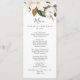 Este elegante cartão de janto de casamento branco e esbranquiçado de magnólia é perfeito para um casamento clássico moderno. O design floral suave apresenta coloração aquosa, cor-de-rosa pincelada, impressionantes flores brancas de magnólia e algodão, com ouro e folhas verdes, num arranjo luxuoso. Este menu pode ser usado para recepção de casamento, janto de ensaio ou qualquer evento.