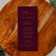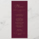 Este delicado cartão de janto de casamento de ouro e burgundy é perfeito para um casamento moderno. A design romântica minimalista apresenta uma magnífica e elegante tipografia amarela ouro champanhe num fundo vermelho burgundy com um aspecto simples e limpo. Este menu pode ser usado para recepção de casamento, janto de ensaio ou qualquer evento.