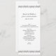 Menu de mesa de casamento longo e magro feito em branco com gráficos elegantes de bandas de joias de tom prateado, no topo e na parte inferior do menu. Personalize todo o texto para se adequar ao menu de recepção de casamento.