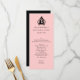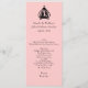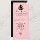 Cardápio longo e magro de mesa de casamento feito a rosa com elegantes gráficos em estilo silhueta preta de pássaros apaixonados em uma gaiola de pássaros. Personalize todo o texto para se adequar ao menu de recepção de casamento. Amável adição à sua recepção de casamento e combina com a nossa coleção de casamento Chic Pink e Black Love Birds.