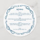 Um detalhe divertido para um chá de noiva ou de bebê, recepção de casamento ou noite das meninas, este cardápio de jantar redondo apresenta uma coroa circular de laços e fitas desenhados à mão em azul marinho clássico e branco. Personalize o cardápio com suas próprias seleções de alimentos e edite as escolhas de fonte, espaçamento e todas as cores usando o botão azul "editar design" para personalizá-lo verdadeiramente para o seu evento.