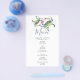 Melhore o seu evento com o nosso menu de janto favorável ao orçamento, complementando perfeitamente a nossa coleção costeira de caranguejos-d'água. Personalize-o com seus nomes e opções de refeições para um toque exclusivo. O verso apresenta uma cor azul marinho sólida, adicionando um contraste elegante. Ideal para praia e casamentos náuticos, este menu traz um olhar na moda e coeso para o seu dia especial. Explore a suíte de papelaria de casamento completa em www.zazzle.com/dotellabelle.