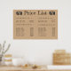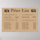 Menu de Preços de Fotógrafo da Câmera Kraft Poster