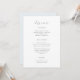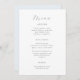O belo menu da quinceanera tem um estilo clássico e elegante, e apresenta um roteiro de caligrafia bonito e uma parte azul clara e pastel do cartão. Personalize com seus detalhes do menu quinceanera.