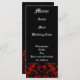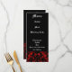 Menus de casamento elegantes e clássicos do tema Gótico para personalizar com seu próprio texto. Em vermelho e preto com uma bela inscrição medieval branca.