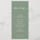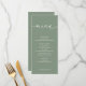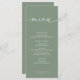 Menu moderno e elegante apresenta um design verde sábio e branco. Personalize com o menu do seu evento com o modelo fácil de editar, com uma fonte de script elegante e uma fonte de serif elegante. Verifique os itens correspondentes na coleção "Modern Elegant".