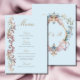 Um convite de casamento temático para uma república de vintage opulente. Apresentando elegantes cristas barrocas em volta de suas iniciais Azul macio com tons de roxo azul e pinks em uma matiz pastel refletindo os tempos de regência. Vintage e design de casamento elegante. Um design personalizado do Menu Casamento com suas informações facilmente alteradas para personalizar seu papel de carta de casamento. Papel de carta de casamento pessoal dos Designs Finos de Chessie.