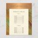 Traços elegantes e modernos pinceladas abstratas terroso ferrugem terracota, cores verde e burgundy escuro fazendo um lista de preços ou menu de serviço flyer publicitário com um cabeçalho geométrico glamouroso dourado falso metálico. +++++++++++++++++++++ Escolha perfeita para salão de beleza, café, esteticista, artista de maquiagem, serviços de cílios e sobrancelhas, estúdio de unhas. ++++++++++++++ Fácil de personalizar com o nome da sua empresa e sua lista!