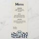 Menu folha única, tamanho: 10,16 x 22,86 cm, papel: Semi-brilho Básico