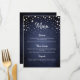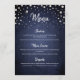 Cartão de menu Elegante Denim e Pearls com um fundo texturizado denim com lindas pérolas