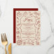Realce o seu casamento com este cartão de menu ilustrado em vermelho rústico e creme. Com ícones de comida desenhados à mão e um design clássico, este cartão de menu personalizável adiciona um toque charmoso ao seu dia especial. Perfeito para mostrar o seu menu cuidadosamente selecionado, este cartão é elegante e funcional, tornando-se uma lembrança bonita para os seus convidados. Ideal para casamentos, aniversários ou qualquer evento sofisticado, este cartão de menu combina estilo com praticidade.