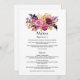 Menu de casamento floral cor-de-rosa, roxo, preto e ouro. Ideal para qualquer tema ou casamento de jardim.
