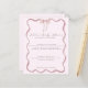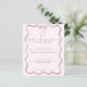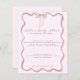 Celebre seu belo chá de fraldas em estilo com esses menus de chá de fraldas cor-de-rosa-borda ondulada para uma garota. Este menu de chá de fraldas de menina apresenta uma borda de onda rosa-chic com um arco rosa clássico concluído com texto clássico de letra de caligrafia. Perfeito para uma estética de chá de fraldas rosa.