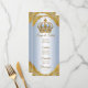 Menu Príncipe chá de fraldas com lindo azul bebê e coroa dourada em um belo fundo azul bebê e rodovalho. Esses menus de chá de fraldas azul e ouro são facilmente personalizados para seu evento simplesmente adicionando seus detalhes no estilo de fonte e no layout preferidos. Você pode redimensionar e mover a coroa conforme necessário.