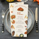 Menu folha única, tamanho: 10,16 x 22,86 cm, papel: Semi-brilho Básico