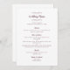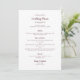 O cardápio de casamento tradicional elegante apresenta um design clássico romântico. Duas decorações florescem cada uma contendo um coração solteiro maravilhosamente ao redor do título "Menu Casamento". Personalize todos os detalhes em delicadas letras vermelhas burgundy e roteiro. Um fundo transparente permite que a beleza de sua escolha de papel seja apreciada na frente e no verso. Um acabamento sem bordas permite que você escolha facilmente sua forma de papel favorita para a aparência final. Para obter resultados ótimos, substitua os detalhes do modelo com seus próprios detalhes, deixando espaço entre os parágrafos como no exemplo e capitalizando onde especificado ou se a palavra for um nome adequado e normalmente capitalizado. Se você precisar de assistência com espaçamento para tornar seus detalhes perfeitamente ajustados, por favor, envie-me uma mensagem no link fornecido na lista ou envie um e-mail para invitationsuites@gmail.com. Normalmente respondo dentro de 24 horas ou menos. Solicitação de cor personalizada aceita.