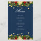 Design de "Programa de Festa de aniversário" de Natal Elegante com decorações de Natal e Confetti Glitter em Marinho com texto personalizado.
