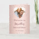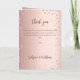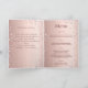 Um gradiente de ouro rosa falso com diamantes cor-de-rosa ao fundo. Texto de boas-vindas, foto, programa, menu e um agradecimento no verso.