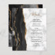 A borda esquerda deste elegante cardápio moderno de casamento apresenta uma coloração aquosa preta, borda agitada, aparada com falso brilho dourado. O texto personalizável combina o script de escrita manual preto e dourado e as fontes de impressão em uma cinza e fundo de mármore branco. O verso apresenta um design de agate preto e dourado correspondente.