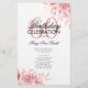 Design de "Programa de Festa de aniversário" elegante com Convênio Floral em Rosa Dourado com texto personalizado.