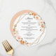 Cartão de Menu de Janto de design de Casamento para Portas, moderno e elegante, Autumn Terracotta Orange Floral Glitter Geométrico Round, que pode ser personalizado com o seu texto. Clique no botão "Personalizar" e use nossa ferramenta design para modificar este modelo. Veja a Design de Arte Gráfica para outros produtos que combinam com este design!