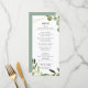 Este cardápio de casamento geométrico de eucalipto verde-ouro é perfeito para uma celebração de casamento moderna. O design apresenta uma bela imagem geométrica dourada adorando elegantes folhas de eucalipto verde de aquarela elegante.