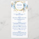 Para primavera azul empoeirado ou casamentos de verão, este azul gelado e ouro tocado design combina com a suíte de casamento. Personalize tudo e use o texto de ofertas para criar sua própria lista de comidas de aperitivos a sobremesas. Para elegância e simplicidade, o reverso permanece branco, mas se preferir, a ferramenta design oferece muitas opções de cor, do azul clássico usado para o menu ao azul poeirento pálido #95B8D9