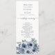 Matching wedding program with beautiful watercolor dusty blue floral design.