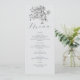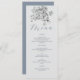 Apresente a sua refeição de casamento com estilo usando este elegante cardápio floral azul. As flores de aquarela macia e caligrafia graciosa criam um aspecto romântico e refinado. Perfeito para o inverno ou casamentos minimalistas, este menu adiciona um toque delicado de encanto inspirado na natureza à sua mesa de recepção.