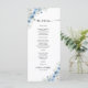 Menu Chá de fraldas de marfim azul empoeirado. Este na moda e elegante Convite para Chás de fraldas apresenta uma linda coloração d'água pintada manualmente Dusty Blue Ivory Floral. Localize itens correspondentes na Coleção Floral de Marfim Azul empoeirada.