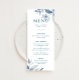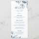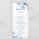 Este cardápio azul empoeirado de casamento floral é perfeito para um casamento romântico, ao ar livre ou uma celebração moderna e chique.
