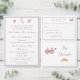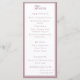 Design front features a white background to your customizable text. Heading is displayed in an elegant font in top center. Following the traditional format for a wedding menu, all text is customizable and displayed in a dusty-rose colored Nuptial font. Entire design is framed by a dusty-rose and white border.