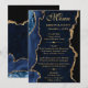 A striking design featuring deep navy blue agate textures accented with shimmering gold glitter for a glamorous, modern finish. Elegant flowing script pairs with bold serif typography to create a refined, high‑end aesthetic. The rich blue tones evoke sophistication and timeless elegance, while metallic gold accents add warmth and sparkle. Perfect for weddings with gemstone or geode themes, this chic menu card brings a polished, editorial look to your table setting—ideal for romantic celebrations and stylish evening receptions.