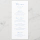 Menu folha única, tamanho: 10,16 x 22,86 cm, papel: Semi-brilho Básico