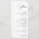 Elegant Wedding Menus – This black and white wedding menu features classic calligraphy and refined typography, perfect for an elegant reception dinner. Designed for formal celebrations, it beautifully highlights each food course with timeless sophistication. A chic and graceful addition to your table settings, this menu complements any elegant wedding décor.