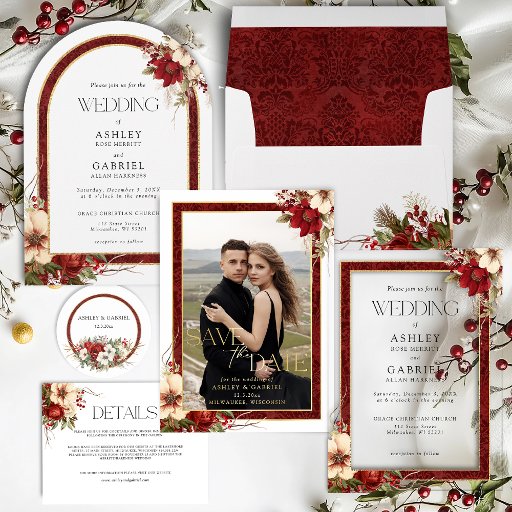 Elegant Christmas Red Damask FloralCriado por Tanya G.