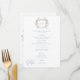 Step into a world of timeless elegance with our exquisite Baroque wildflower wedding menu. A regal crest sits a top with the menu details which appear in dusty blue, in sophisticated harmony. Perfect for couples who seek an invitation that whispers luxury, romance, and the charm of old-world grandeur. Let your wedding begin with a design as breathtaking as the day itself. Created by Simply Farmhouse Press.