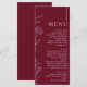Menu Elegant Floral Burgundy Formal Wedding Dinner