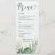 Elevate your reception tables with this elegant tropical wedding menu card, featuring hand-painted watercolor monstera leaves, palm fronds, and lush botanical greenery. The vibrant island-inspired artwork creates a fresh, exotic atmosphere perfect for destination weddings, beach celebrations, or tropical garden receptions. Designed with a clean, modern layout, this menu card is fully customizable—allowing you to add your courses, signature drinks, and special notes with ease. A stunning finishing touch that complements your cohesive tropical wedding décor.