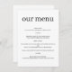 Menu folha única, tamanho: 10,16 x 22,86 cm, papel: Semi-brilho Básico