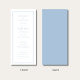 Menu folha única, tamanho: 10,16 x 22,86 cm, papel: Semi-brilho Básico