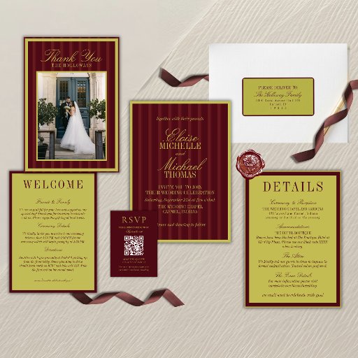 Elegant Chartreuse Burgundy Stripe Formal WeddingCriado por Molly H