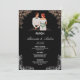 An elegant wedding invitation featuring a romantic illustrated couple framed by delicate florals on a dark, sophisticated background. Perfect for classic, modern, or romantic wedding themes. Fully customizable with your names, date, and event details.