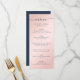Elegante cardápio de casamento azul marinho e bege com uma fonte de letra moderna. Itens correspondentes disponíveis.