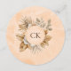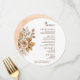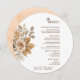 O Elegante Boho Neutro Acentos Florais Arredondados Cartão de Menu de Casamento Arredondado para a placa Um Menu Adequado para um Caso Romântico Eleve sua recepção de casamento com esses cartões redondos elegantes. Os delicados Acentos Florais Neutrais de Boho sobre um fundo branco nítido criam um olhar romântico e convidativo. A design circular adiciona um toque de elegância moderna. O menu apresenta seções para aperitivos, cursos principais, sobremesas e refrigerantes, garantindo uma experiência perfeita de jantar para seus convidados. O pano de fundo de aquarela suave no verso, personalizado com as iniciais do casal, adiciona um toque de cinza.