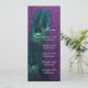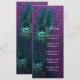 Lindo fundo roxo brilhante com cardápio de casamento com pena de pavão azul turquesa elegante e cartão de recepção. Este convite de casamento de pavão roxo e azul turquesa é facilmente personalizado para o seu evento. Você pode excluir a imagem de fundo do verso se quiser escolher uma cor de fundo sólida, como azul turquesa ou roxo, para combinar com a frente.