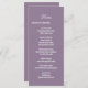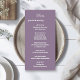 Menu Elegante de recepção de casamento de lavanda de script, Ele inclui tudo o que você precisará para sua recepção, incluindo seu primeiro curso, segundo curso, entrada e sobremesa. Você pode personalizá-lo incluindo seus itens favoritos.