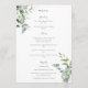 Este único design botânico apresenta um galho curvante de folhas elegantes de eucalipto com cor d'água com folhas artísticas de prata esboçadas e flores brancas silvestres.