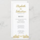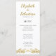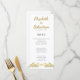 O roteiro amarelo-ouro, o texto preto moderno, e o lindo ornamento florescente que parece borboletas se encontraram juntos para criar este cartão de menu do janto de casamento branco contemporâneo em estilo elegante. Personalize facilmente este modelo de na moda com os seus nomes, data e menu para a recepção especial.
